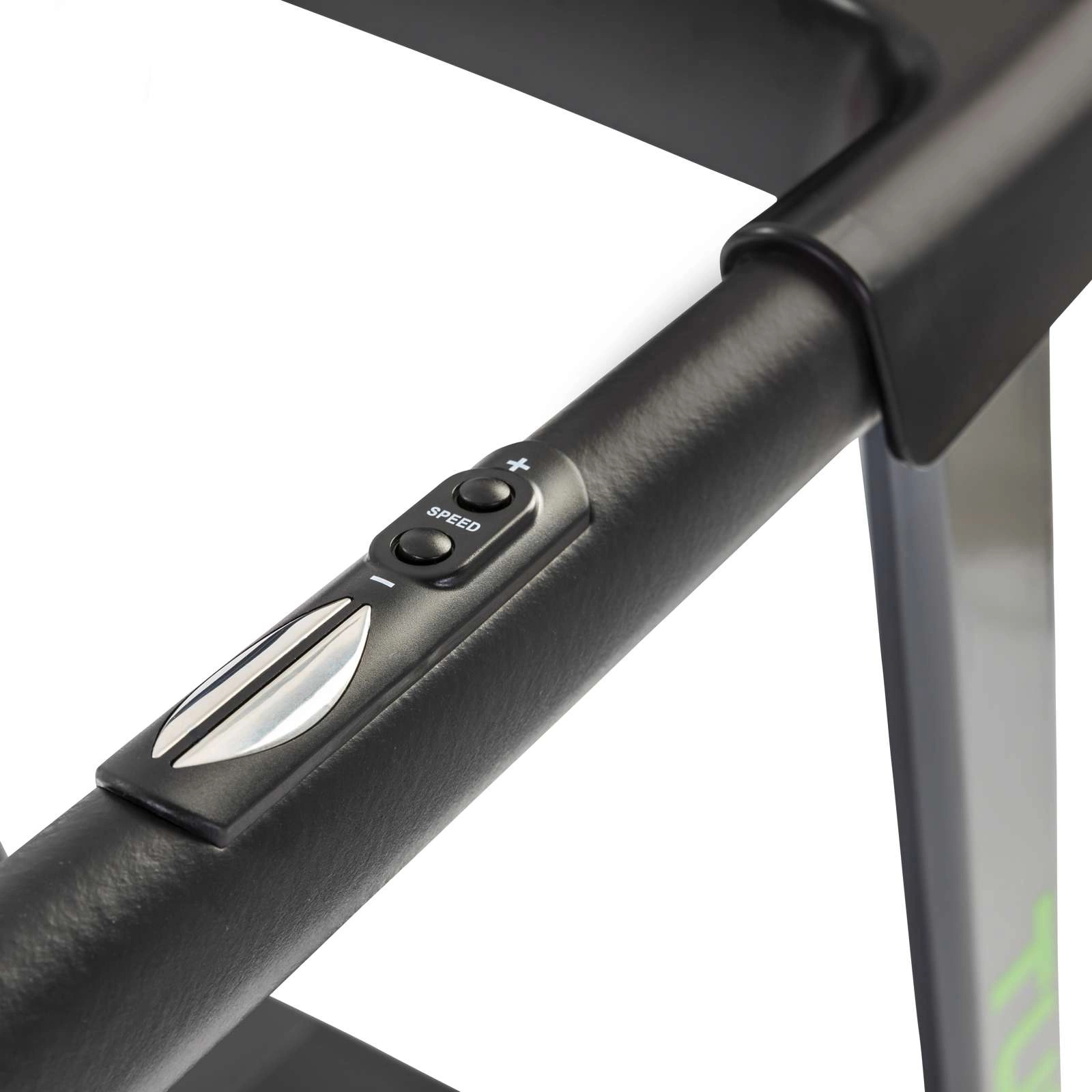 Intuicyjne przyciski na poręczach umożliwiają szybkie i precyzyjne dostosowanie prędkości oraz kąta nachylenia bieżni, co zapewnia wygodę i pełną kontrolę nad treningiem bez potrzeby odrywania wzroku od monitorów czy aplikacji. Ta funkcjonalność sprawia, że każdy trening jest efektywny i komfortowy, dostosowany do Twoich potrzeb i poziomu zaawansowania.