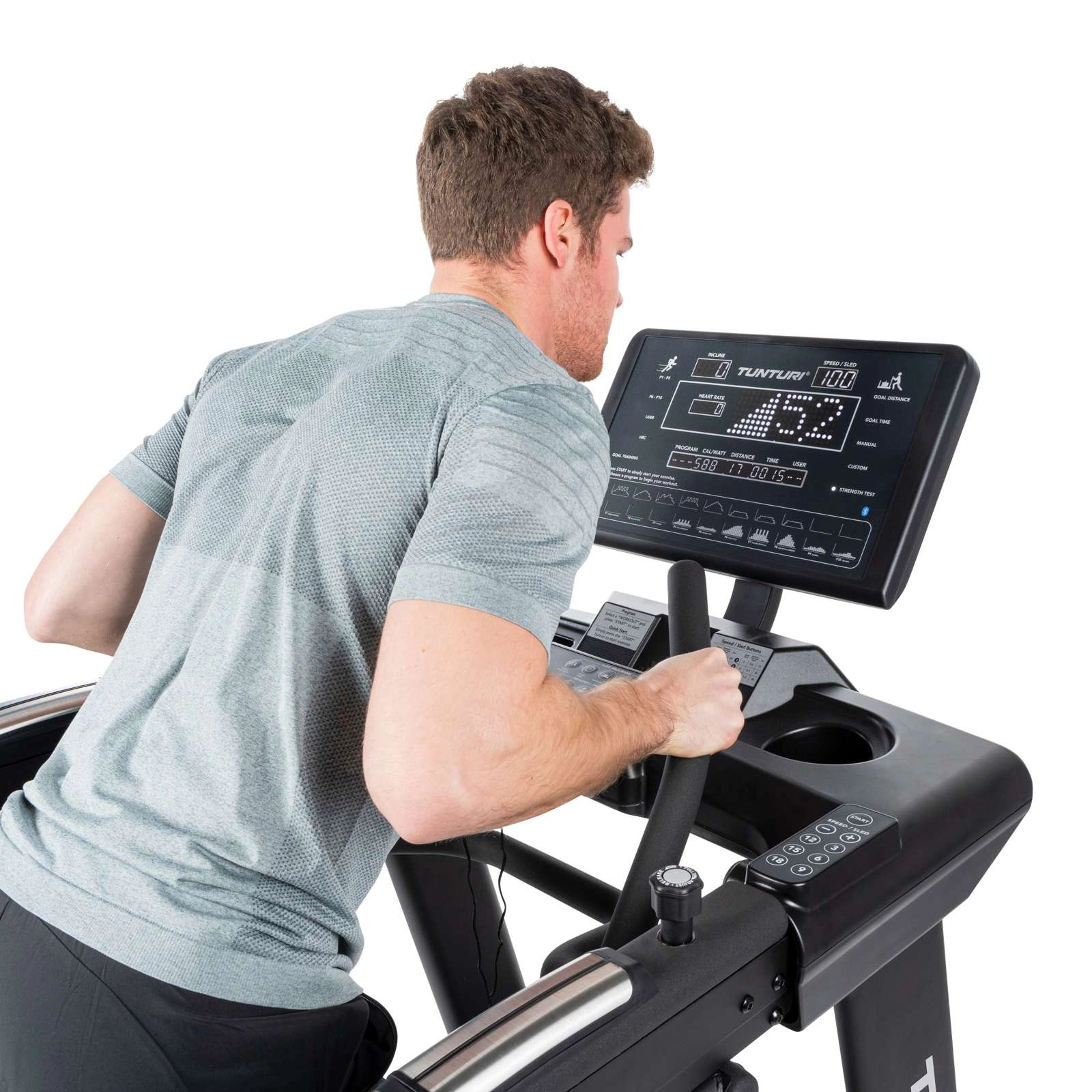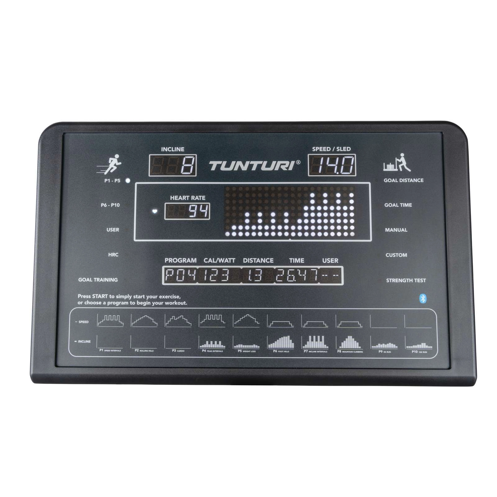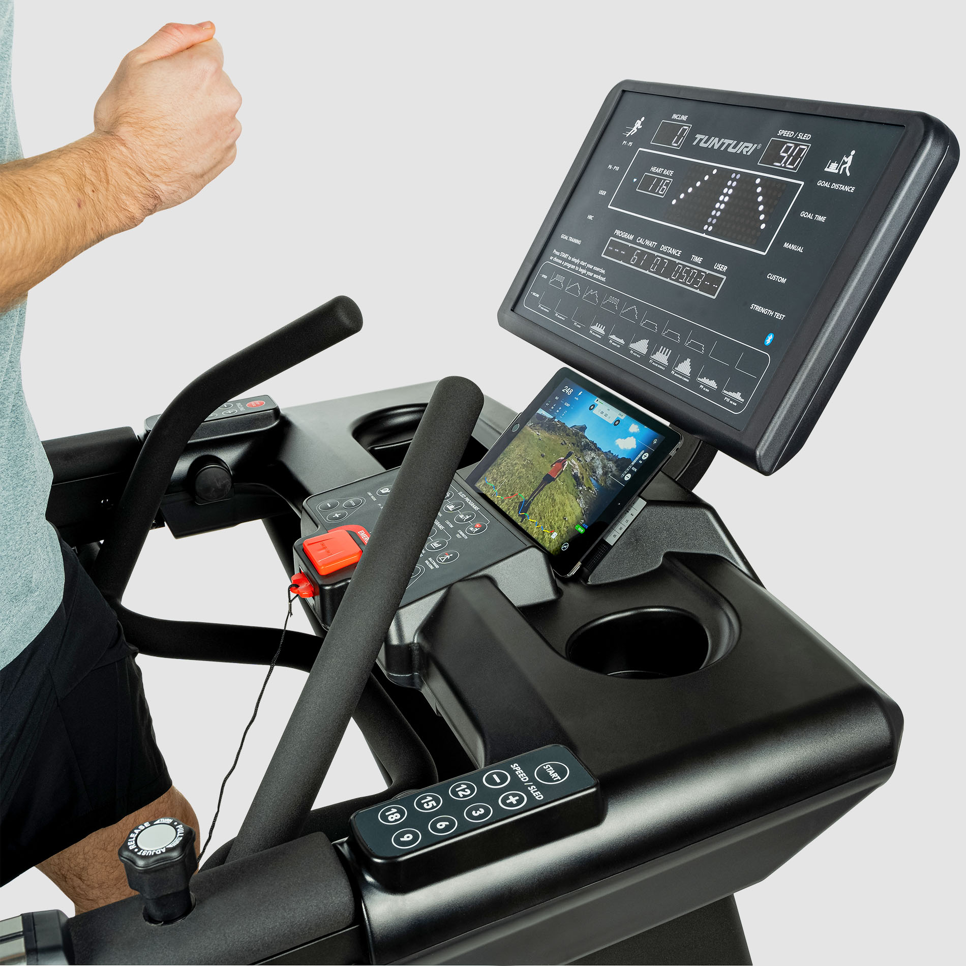 - Łączność Bluetooth: Kompatybilność z aplikacjami Tunturi Routes, Zwift i Kinomap dla interaktywnych, wirtualnych tras treningowych.