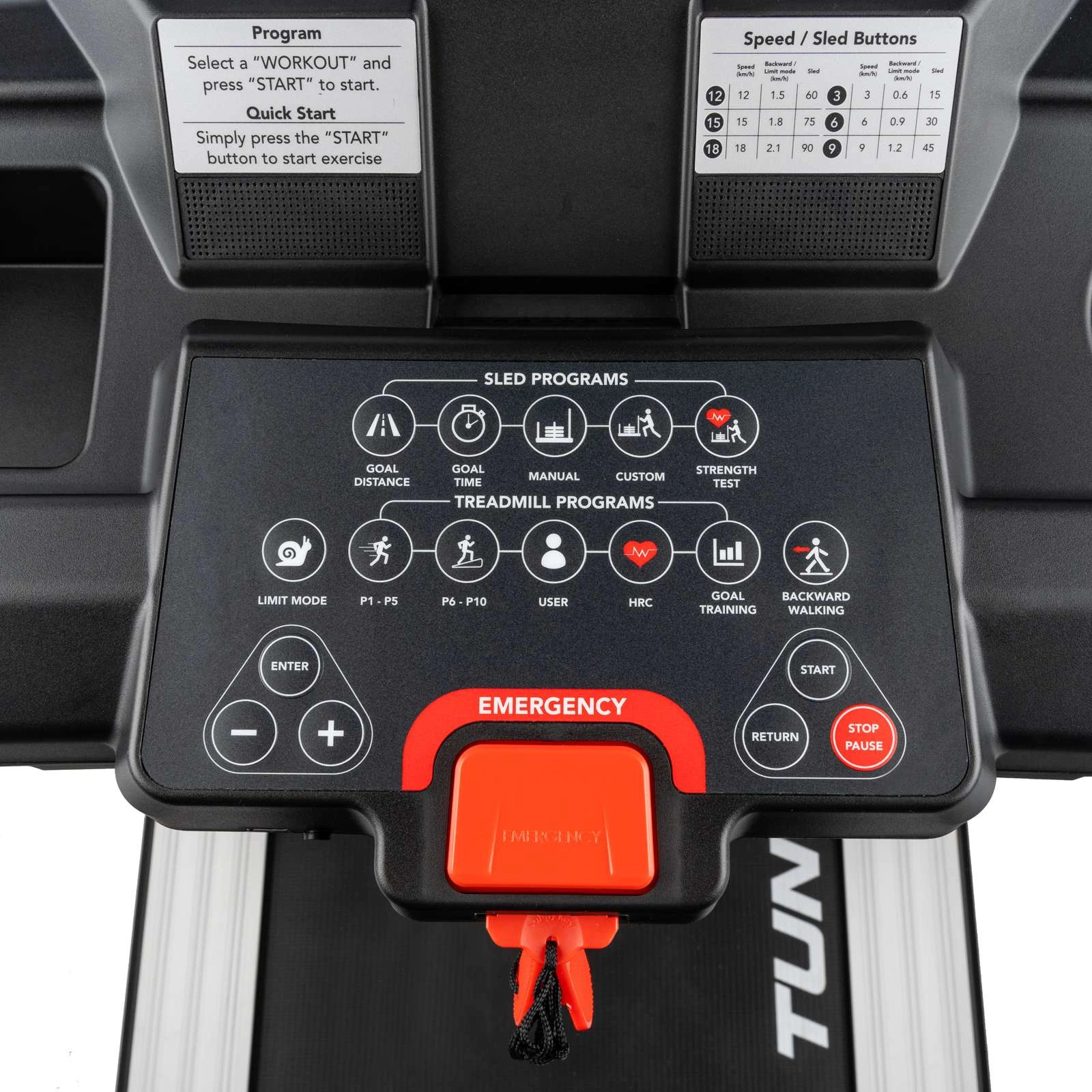 Tryb Sled na bieżni Tunturi Platinum TR30 Core pozwala na intensywny trening całego ciała, symulując ćwiczenia z sankami, które są popularne w siłowniach i studiach treningu personalnego. Dzięki tej bieżni, trening z sankami nie jest już ograniczony do dużych przestrzeni czy specjalnych torów – wszystko, czego potrzebujesz, to jedno urządzenie.