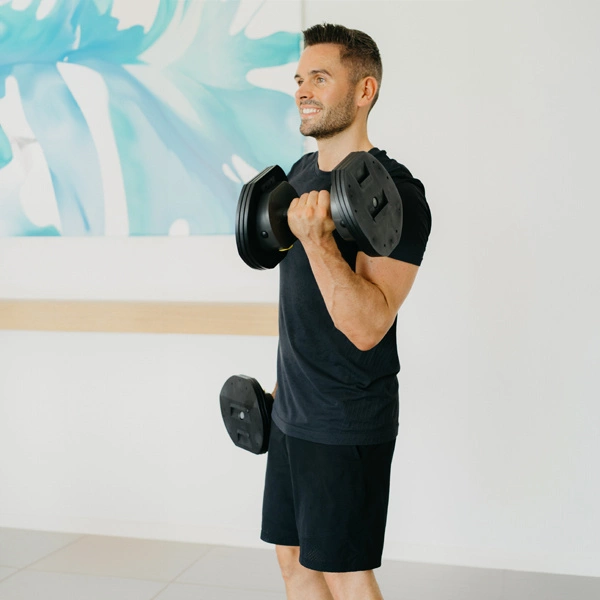 Jedna hantla umożliwia Ci trening aż z 10 różnymi obciążeniami, w zakresie od 4,5 kg do 24,9 kg..