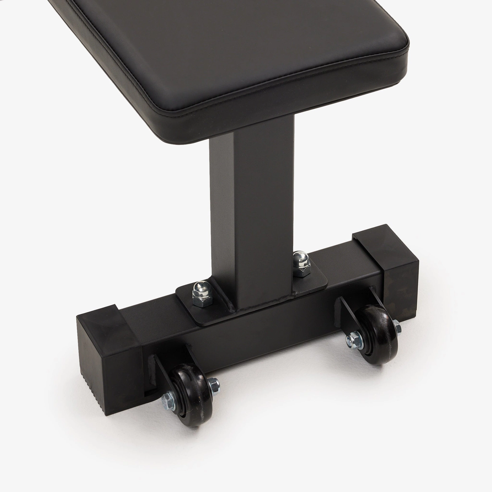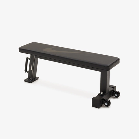 Ławka Nike łączy solidną stalową konstrukcję z praktycznymi kółkami transportowymi. Po treningu możesz ją szybko postawić pionowo i schować – idealna do mniejszych przestrzeni.