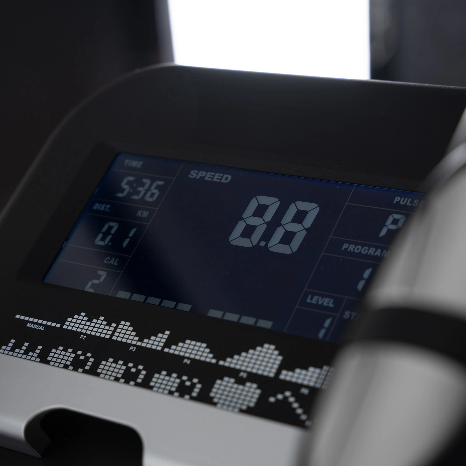 Crosstrainer oferuje 16 poziomów oporu z hamulcem magnetycznym, który zapewnia cichą i równomierną pracę. Długość kroku 48 cm i mały rozstaw pedałów 6 cm gwarantują naturalny, przyjazny dla stawów ruch, a stabilna konstrukcja wspiera użytkowników ważących do 136 kg, także podczas intensywnych jednostek treningowych.Orbitrek zapewnia płynny i cichy trening dzięki magnetycznemu oporowi i 6 kg kołu zamachowemu z przodu.