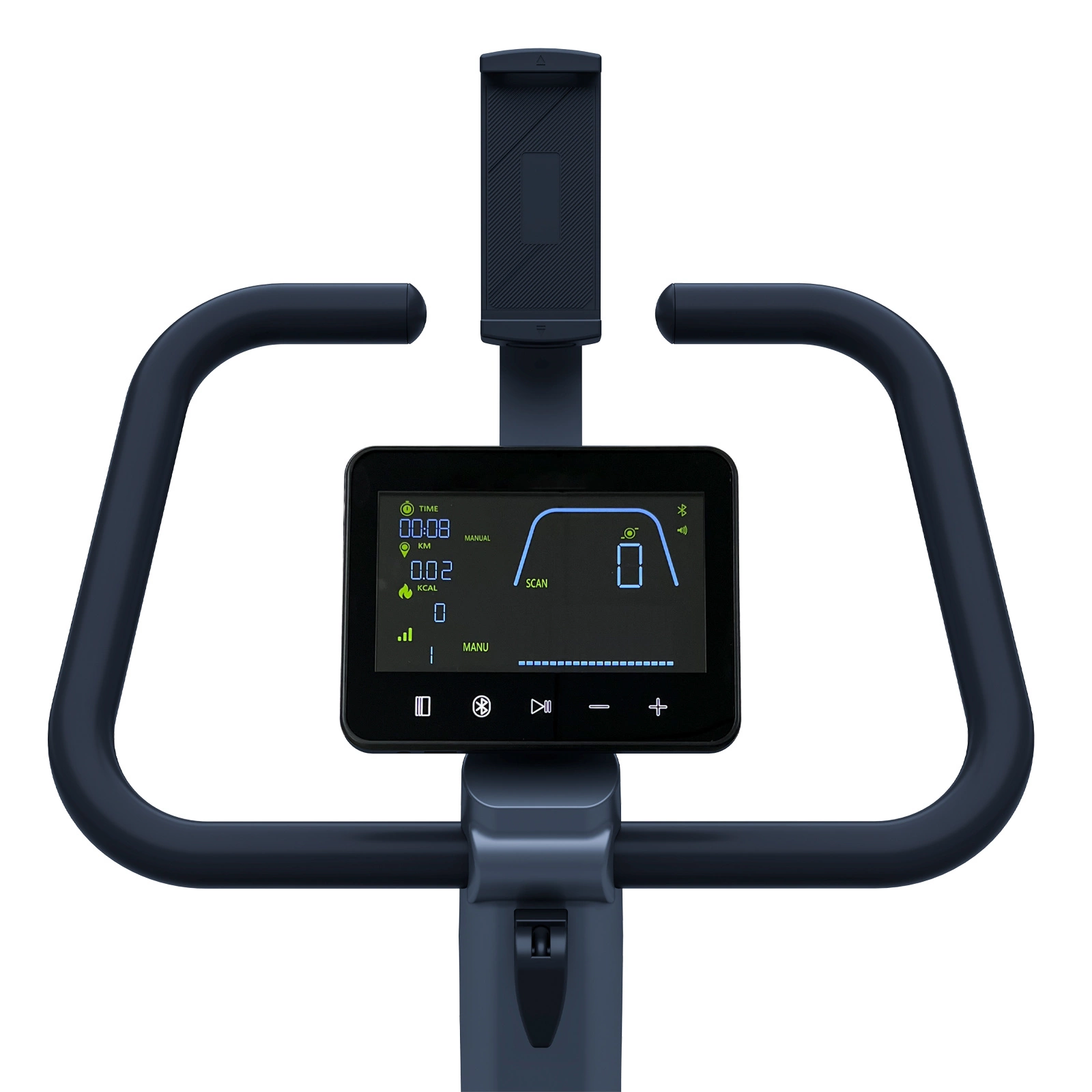 Rower wyposażono w stabilny uchwyt na tablet i smartfon, umieszczony w optymalnym miejscu nad wyświetlaczem. Masz dostęp do ulubionej muzyki, filmów czy seriali.