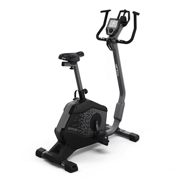 KETTLER TOUR 400 to indukcyjny rower z 6 kg kołem zamachowym i 20 poziomami oporu. Ergometr wyposażony jest w indukcyjny układ hamulcowy z 2 trybami użytkowania. Dostępne są 2 tryby oporu - AUTO (niezależny od prędkości obrotowej) oraz MANU (zależny od prędkości obrotowej).