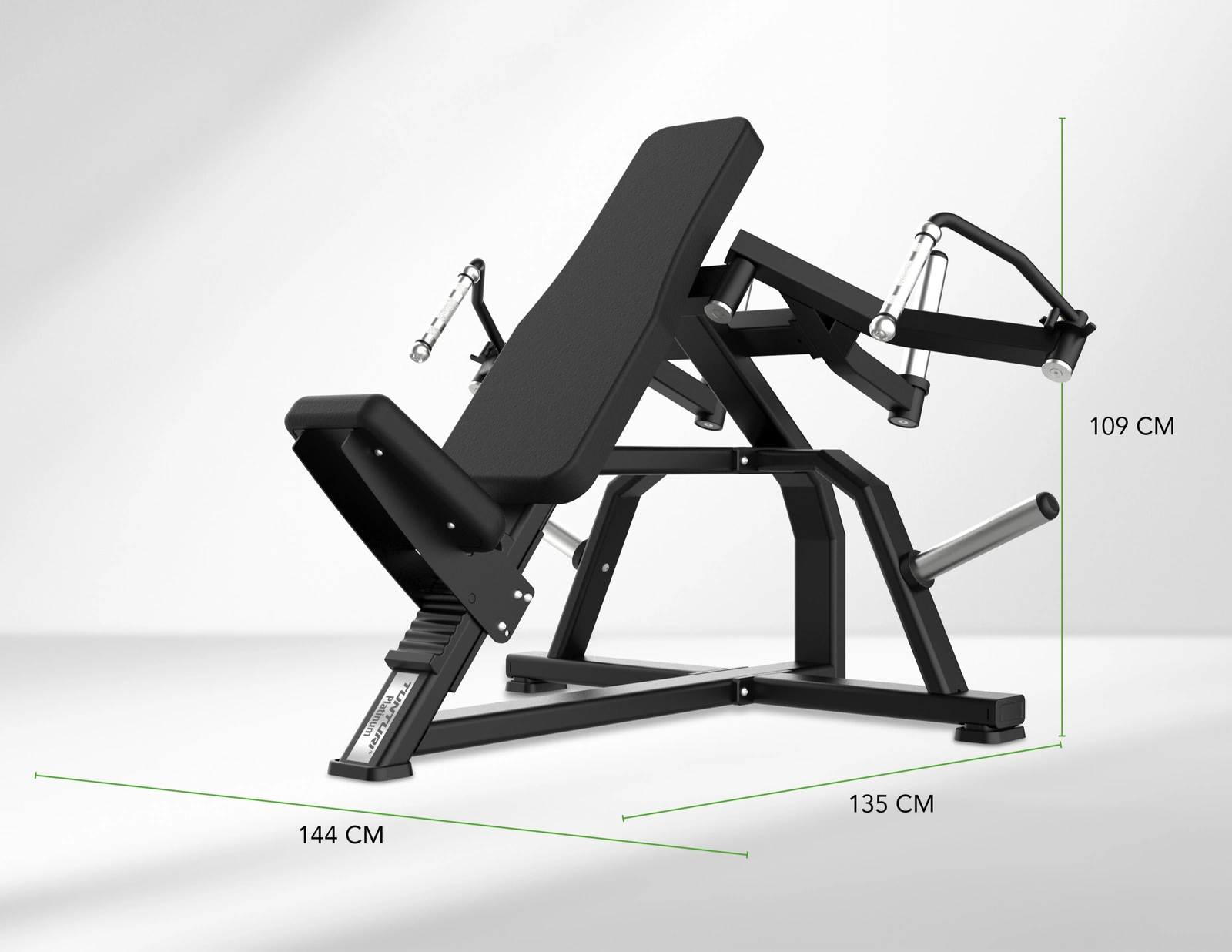 Pec Fly na talerze obciążeniowe odwzorowuje klasyczne rozpiętki z hantlami, ale w stabilniejszym środowisku, co ułatwia techniczne wykonanie ćwiczenia. System załadunku na talerze olimpijskie (50 mm) umożliwia trening nawet do 150 kg na każde ramię. Dzięki płynnej mechanice ruch jest naturalny i bezpieczny dla stawów.Maszyna wyposażona jest także w praktyczne uchwyty do przechowywania talerzy, aby zawsze były pod ręką. Regulowane siedzisko pozwala dostosować pozycję startową do wzrostu i preferencji użytkownika.