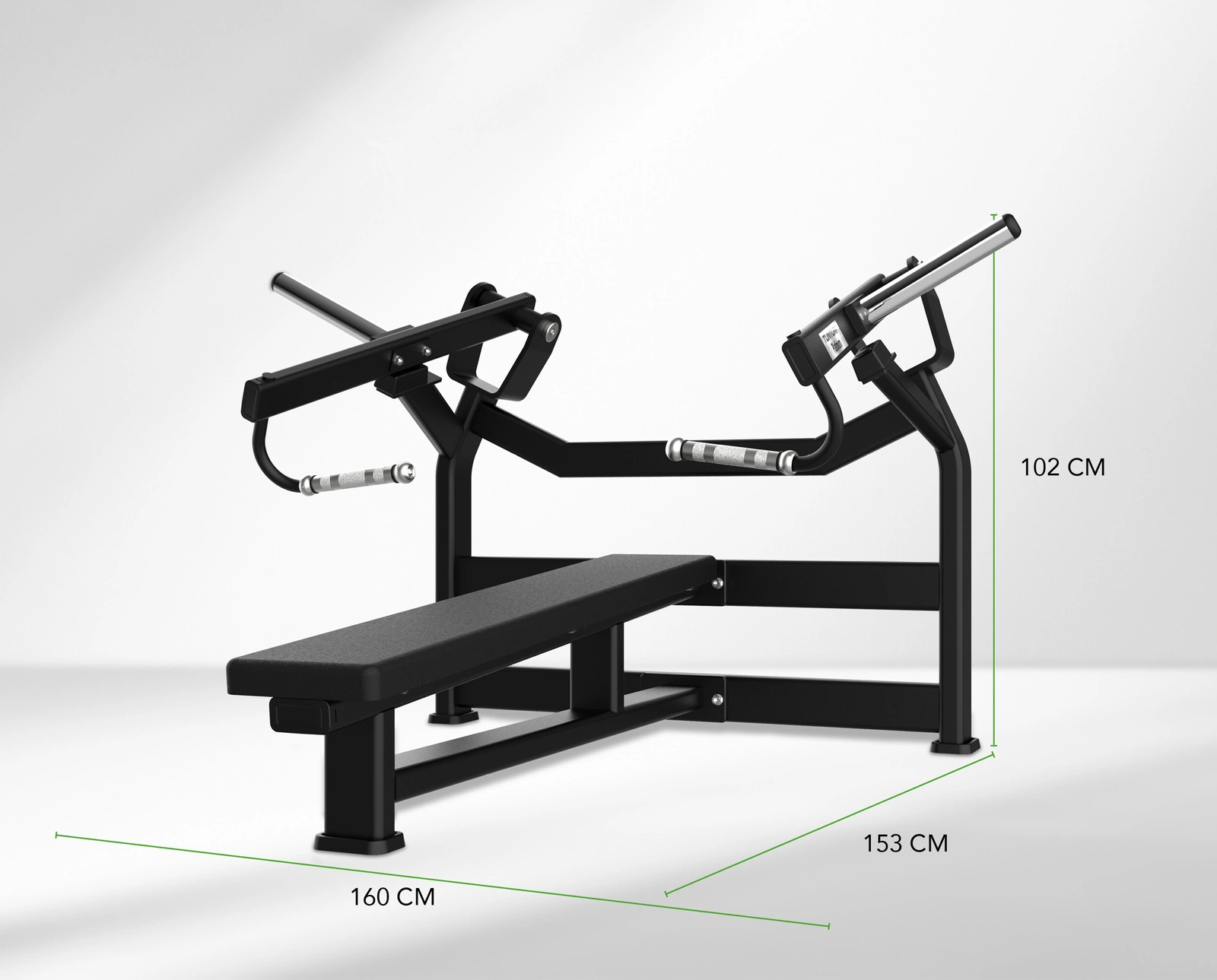 Maszyna odwzorowuje ruch klasycznego wyciskania leżąc, ale w bezpiecznej, kontrolowanej formie. Dzięki zastosowaniu obciążenia talerzowego (standard olimpijski – talerze 50 mm), użytkownik może dowolnie regulować poziom trudności.