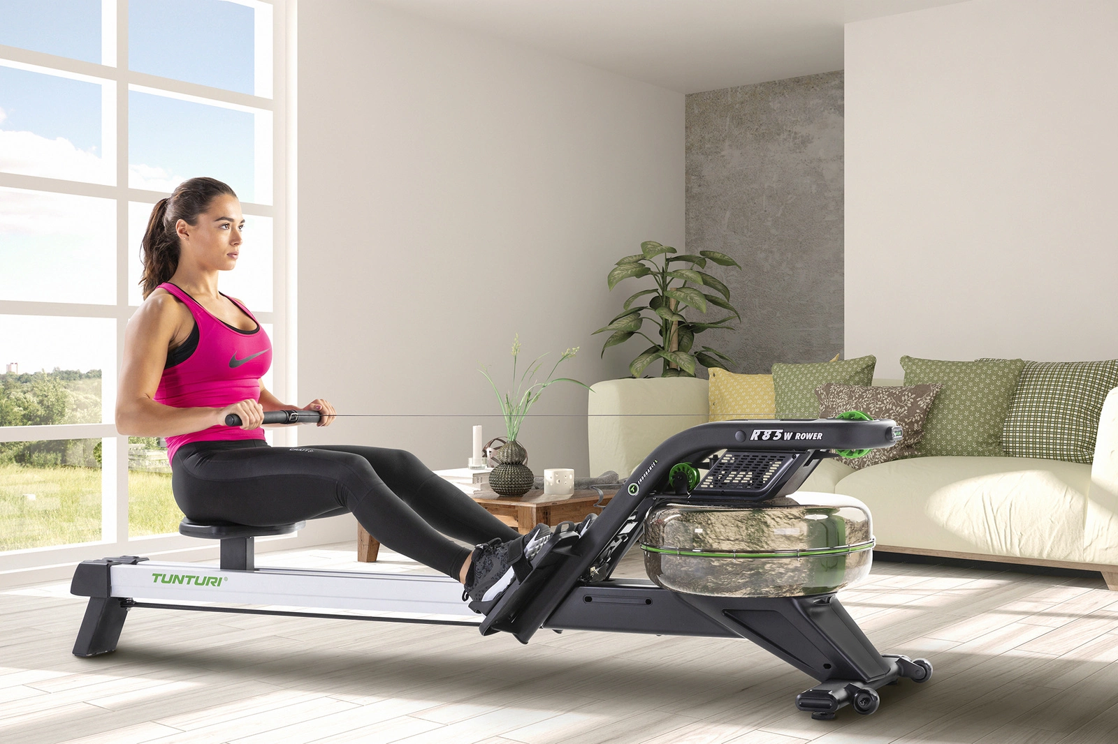 Wioślarz wodny Tunturi Endurance R85W z podwójną szyną - urządzenie wielofunkcyjne dla efektywnego treningu całego ciała