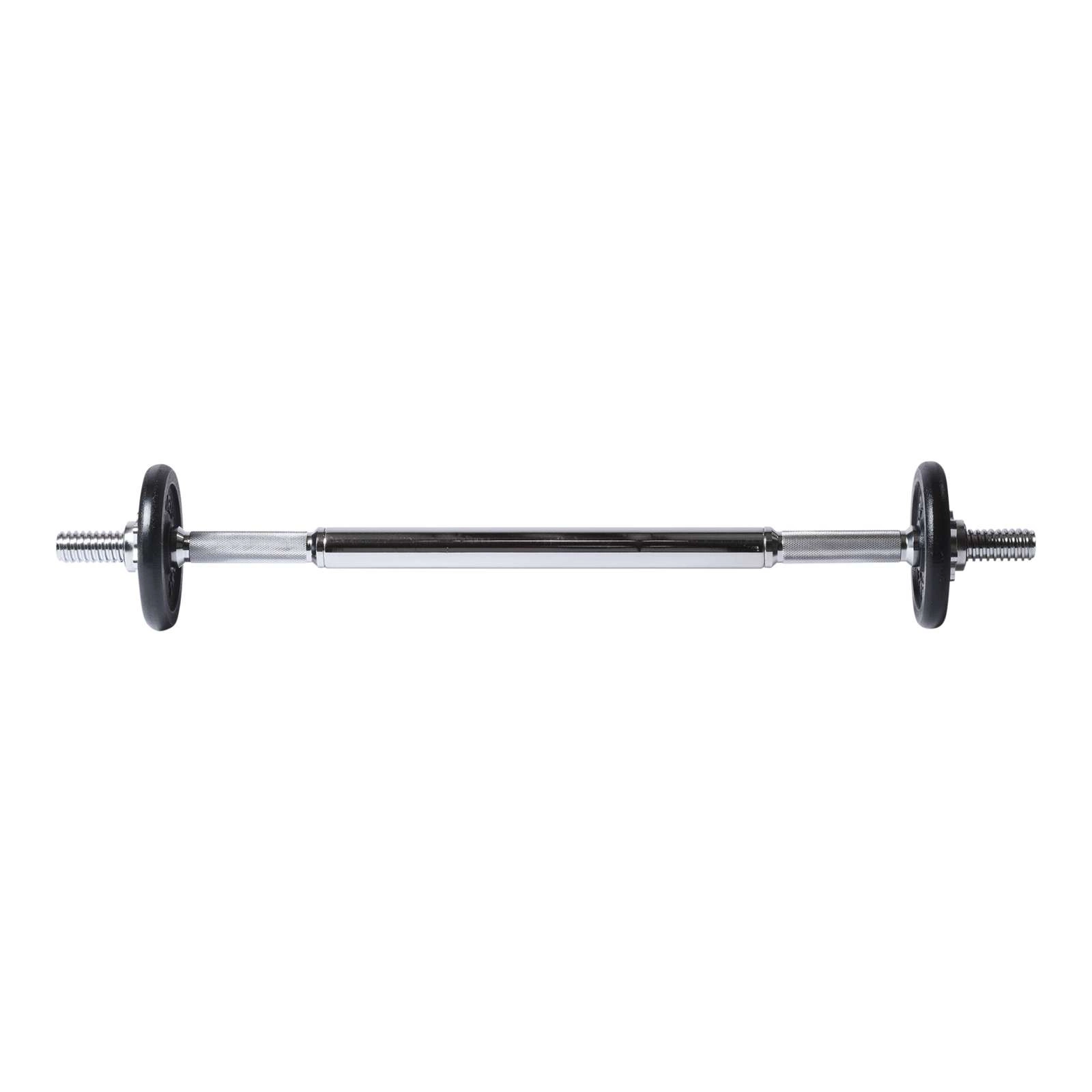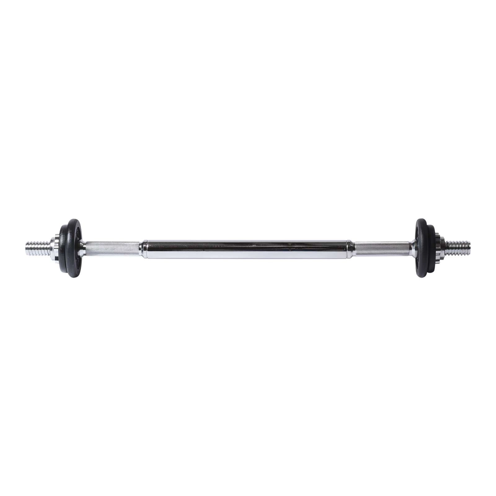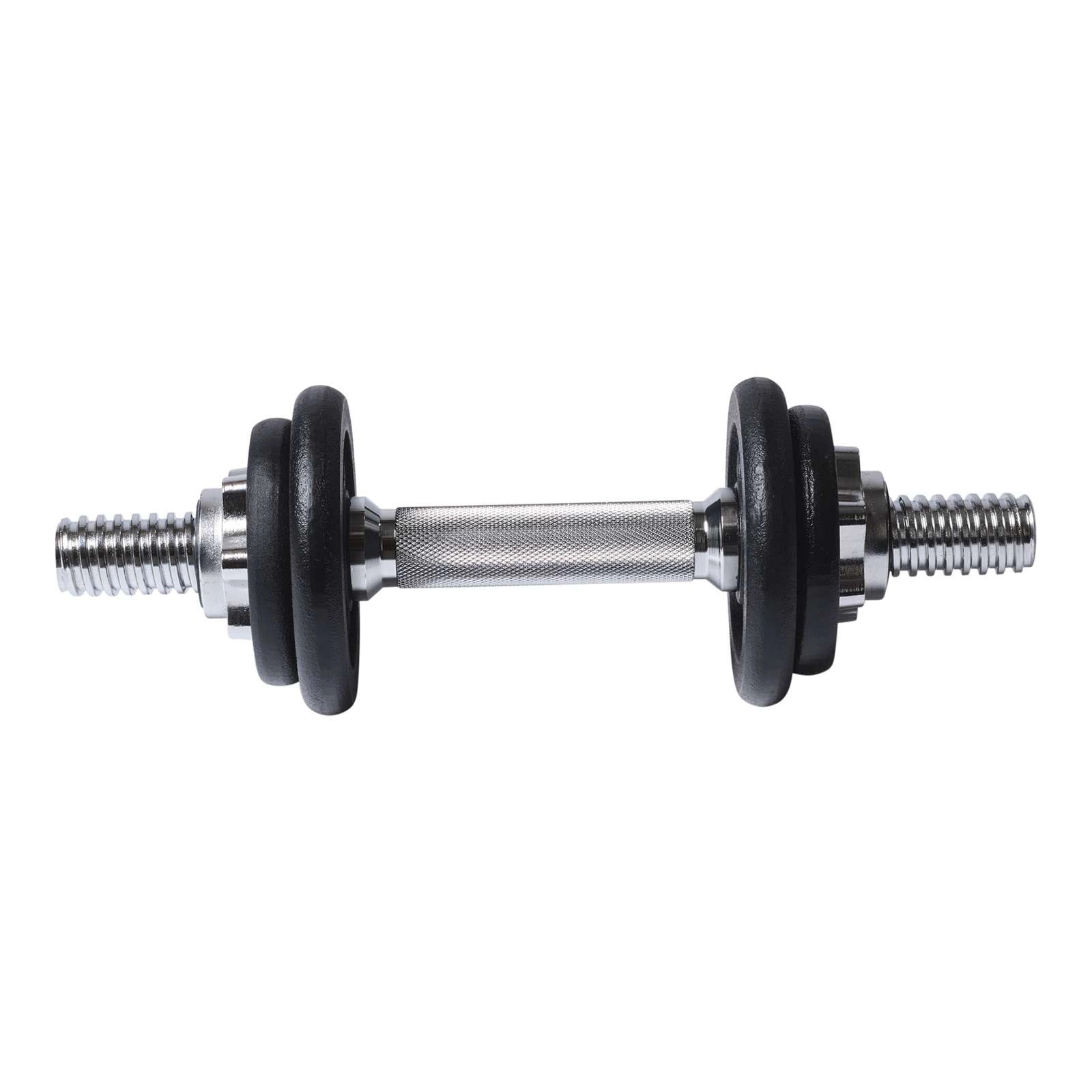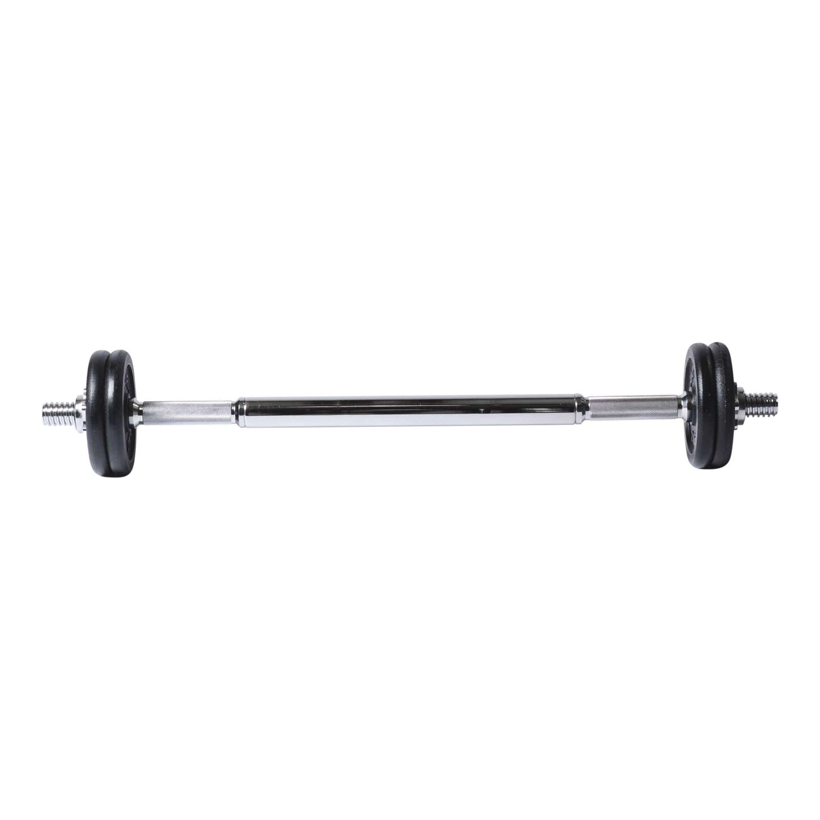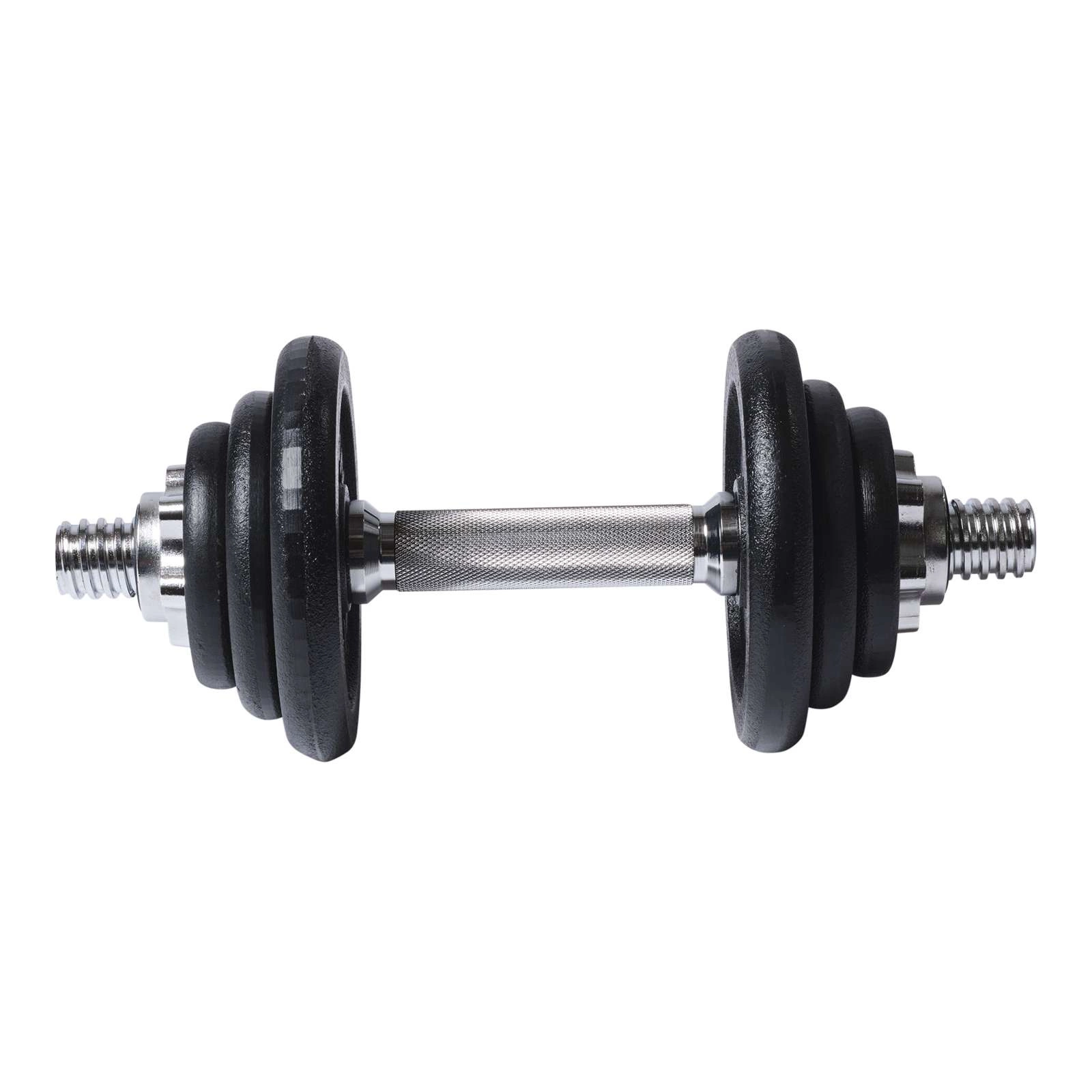 Zestaw oferuje 12 opcji ciężaru dla sztangi (6–20 kg) oraz 8 dla hantli (2–9 kg na jeden hantel). Dzięki temu możesz łatwo zmieniać poziom trudności, dopasowując trening do swoich celów i możliwości. Solidne, chromowane gryfy oraz poręczne nakrętki (30 mm) umożliwiają szybką i bezproblemową wymianę obciążenia.