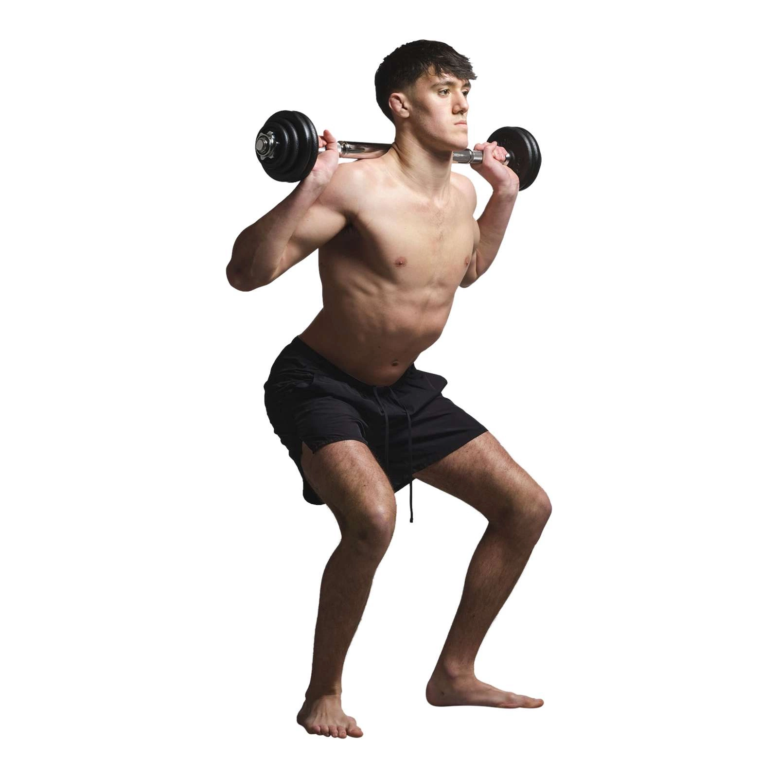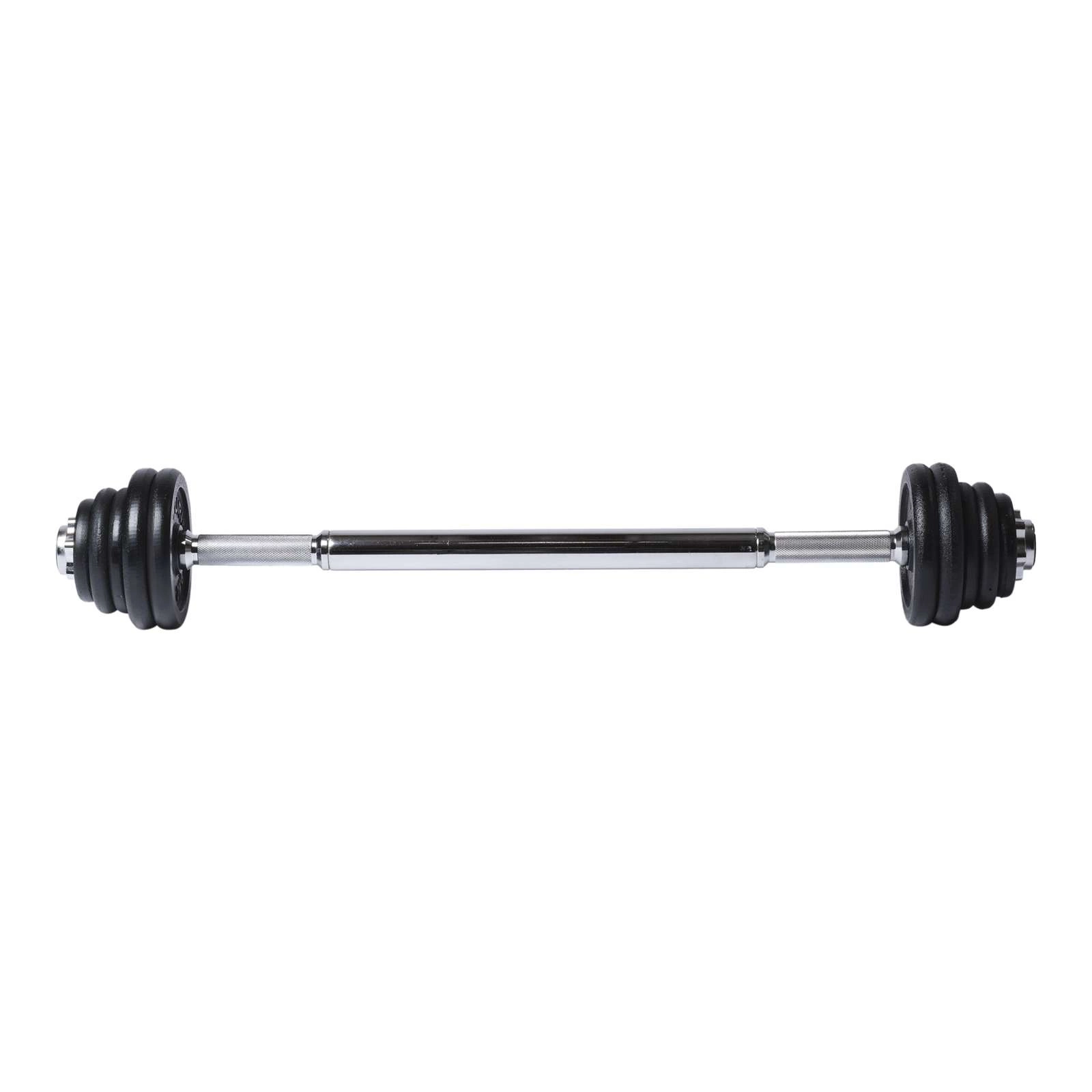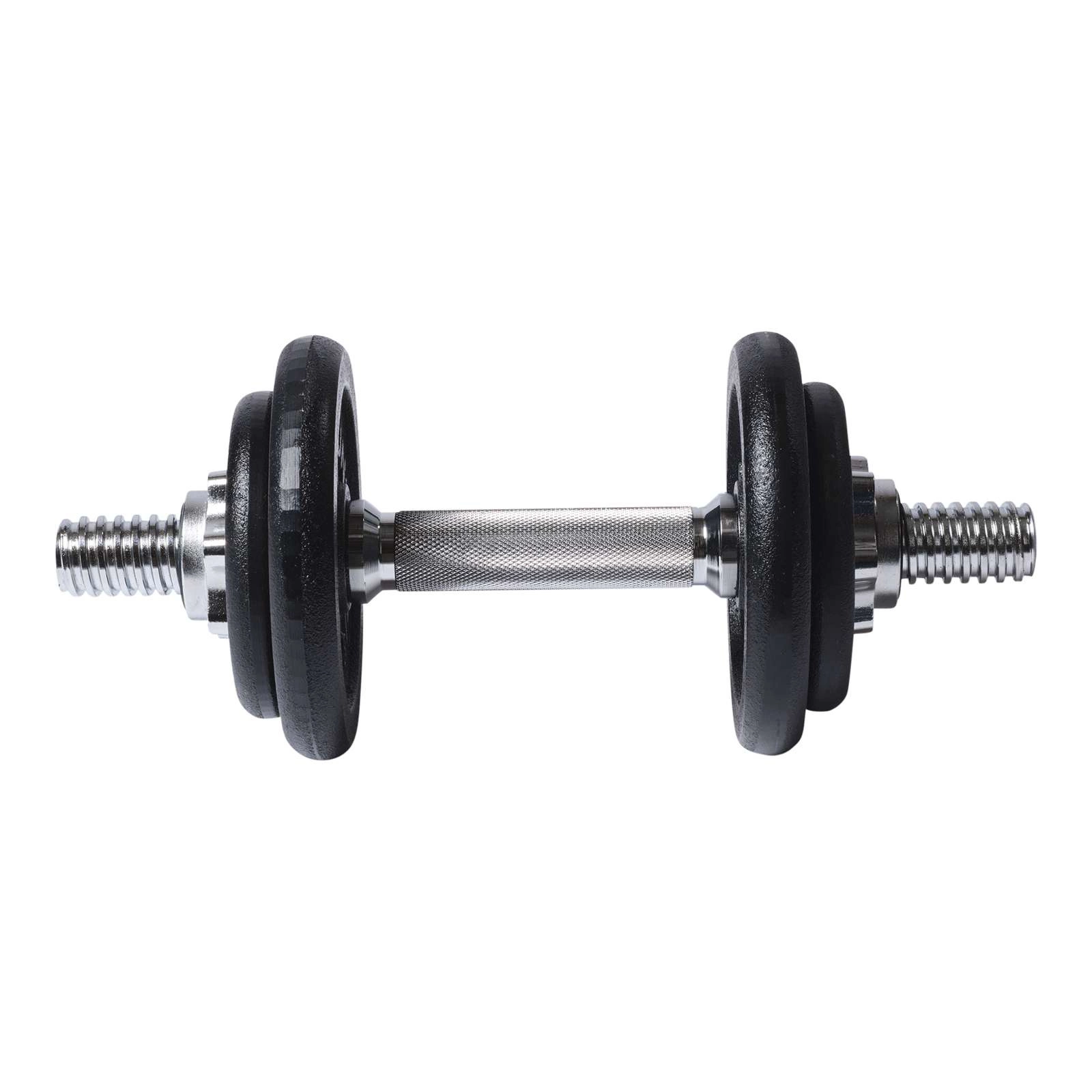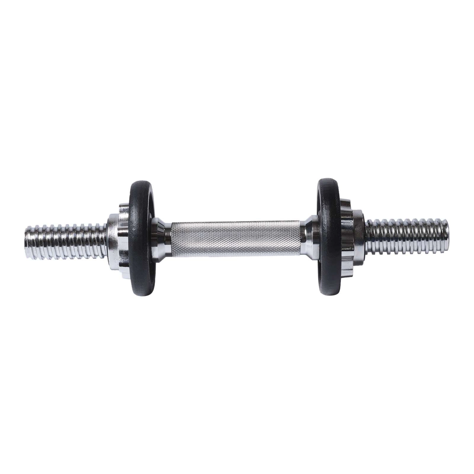 Zestaw oferuje 12 opcji ciężaru dla sztangi (6–20 kg) oraz 8 dla hantli (2–9 kg na jeden hantel). Dzięki temu możesz łatwo zmieniać poziom trudności, dopasowując trening do swoich celów i możliwości. Solidne, chromowane gryfy oraz poręczne nakrętki (30 mm) umożliwiają szybką i bezproblemową wymianę obciążenia.