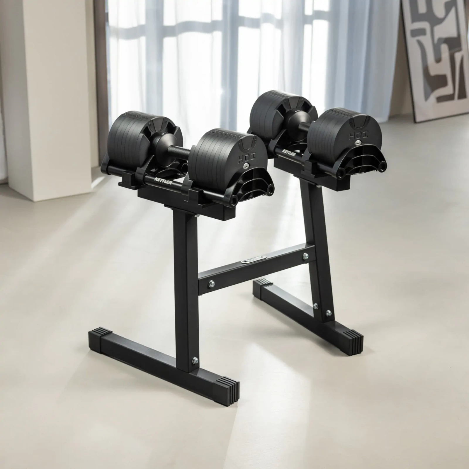 Stojak KETTLER HOI Vario Stand to idealne uzupełnienie zestawu regulowanych hantli HOI Vario 220 i 232. Jego konstrukcja zapewnia stabilność i łatwy dostęp do sprzętu, a także porządek w domowej siłowni.