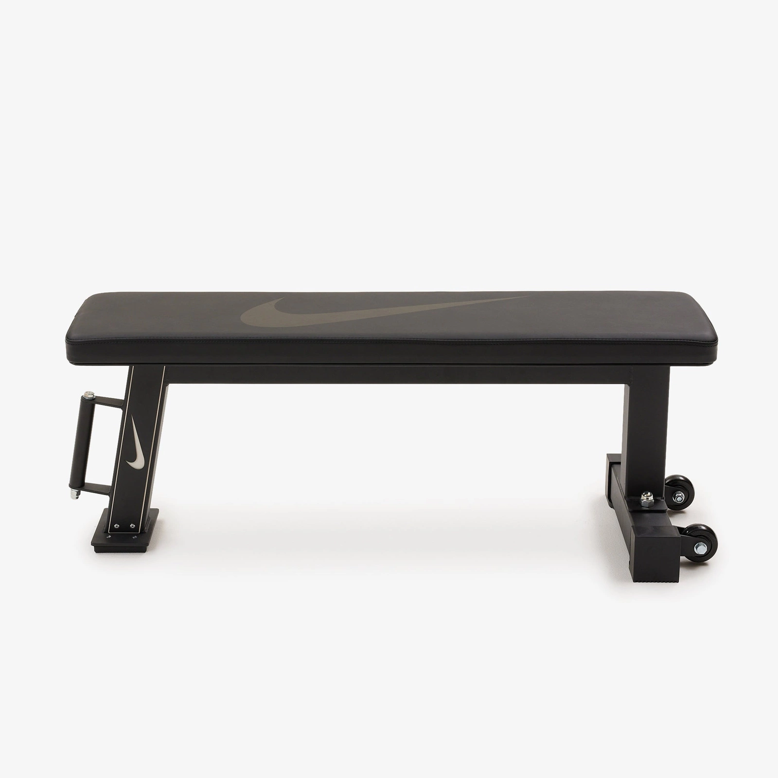 Ławka Nike łączy solidną stalową konstrukcję z praktycznymi kółkami transportowymi. Po treningu możesz ją szybko postawić pionowo i schować – idealna do mniejszych przestrzeni.